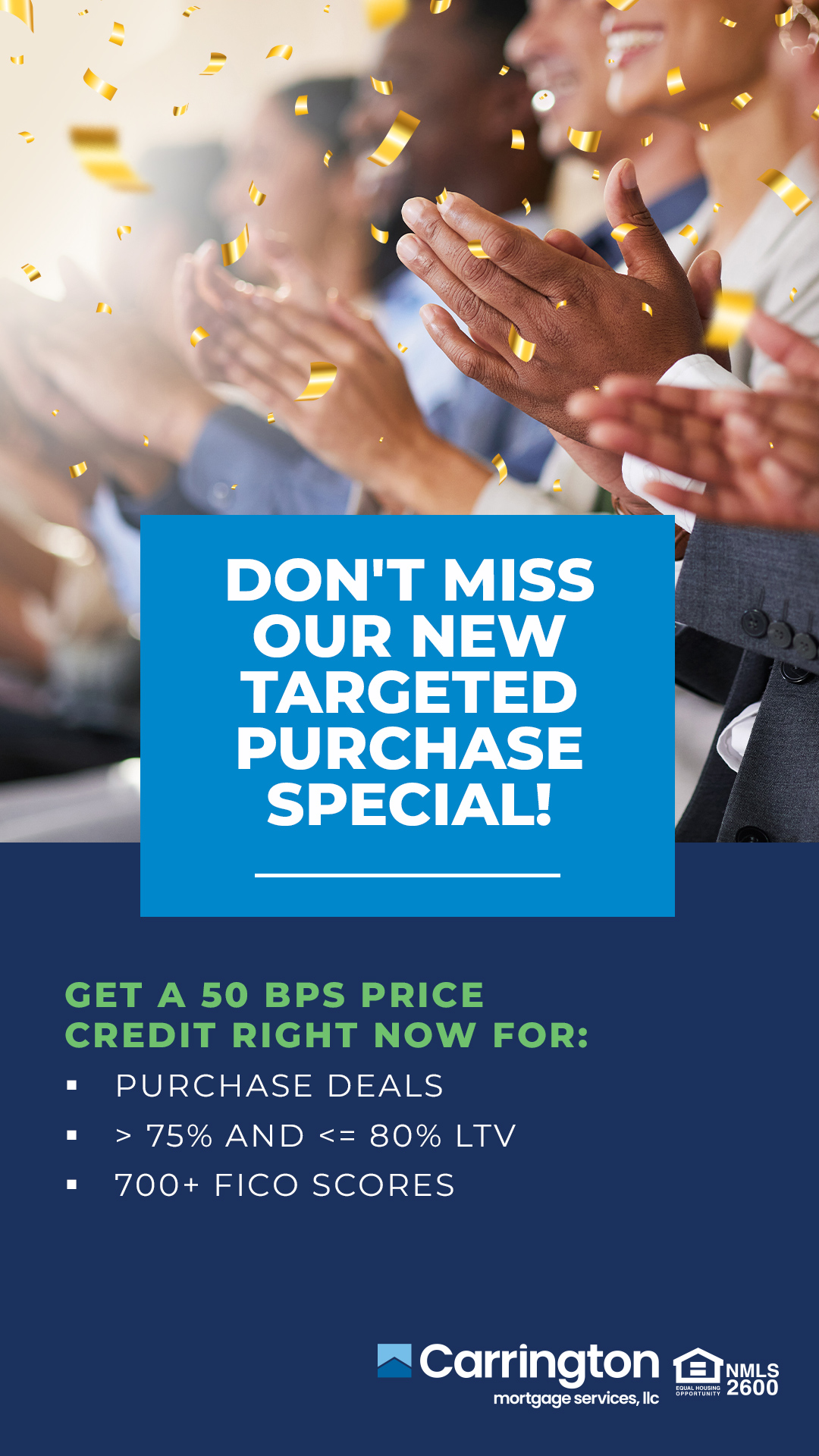 The content of this website is intended for licensed third-party originators or brokers only and may not be duplicated or disseminated to the public. Carrington Mortgage Services, LLC is one of the leading wholesale mortgage lenders.