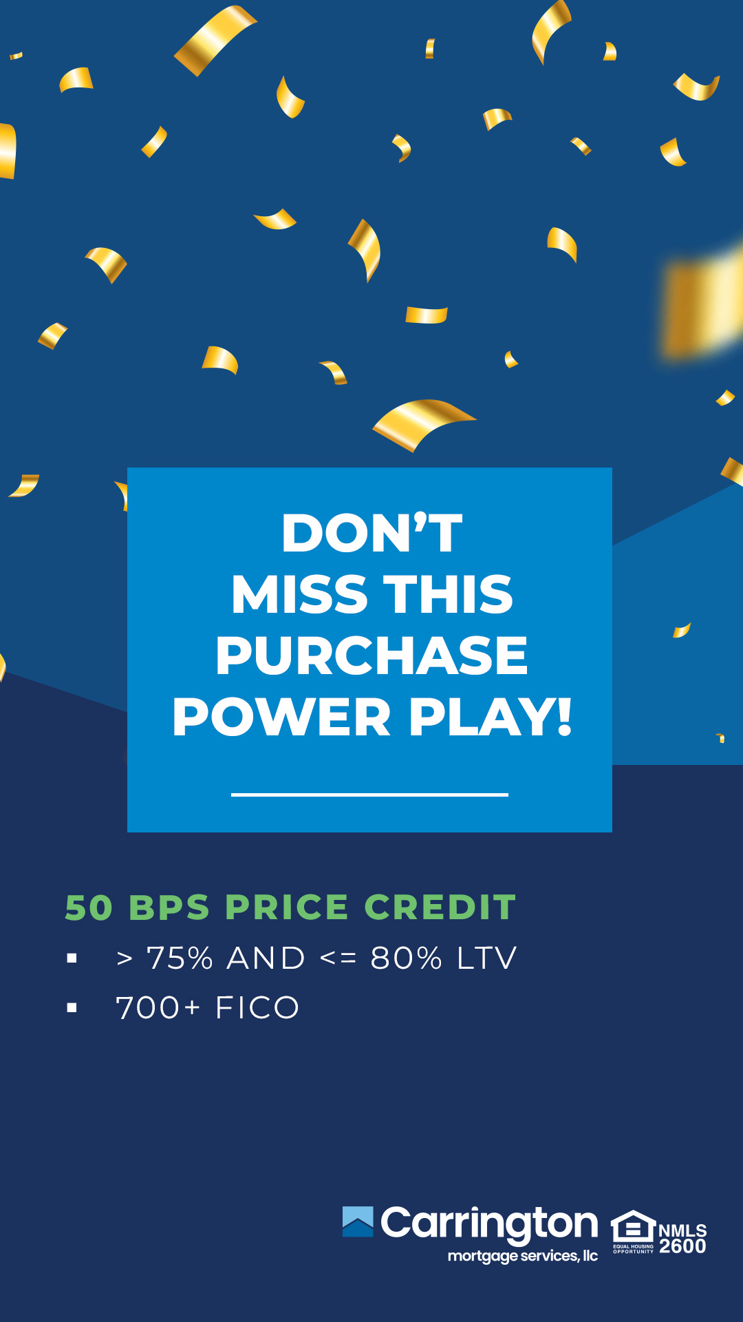Equal Housing Opportunity An Equal Housing Opportunity Lender. Copyright 2026. Carrington Mortgage Services, LLC headquartered at 500 North State College Boulevard, Suites 1030, 1300, and 1400, Orange, CA 92868. NMLS ID # 2600. Toll Free # 800-561-4567. All rights reserved. Restrictions may apply. All loans are subject to credit, underwriting and property approval guidelines.  Nationwide Mortgage Licensing System (NMLS) Consumer Access Web Site:www.nmlsconsumeraccess.com.