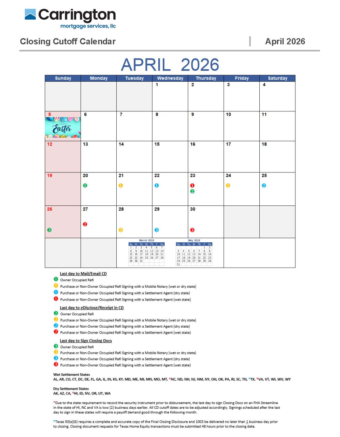 Closing Calendar